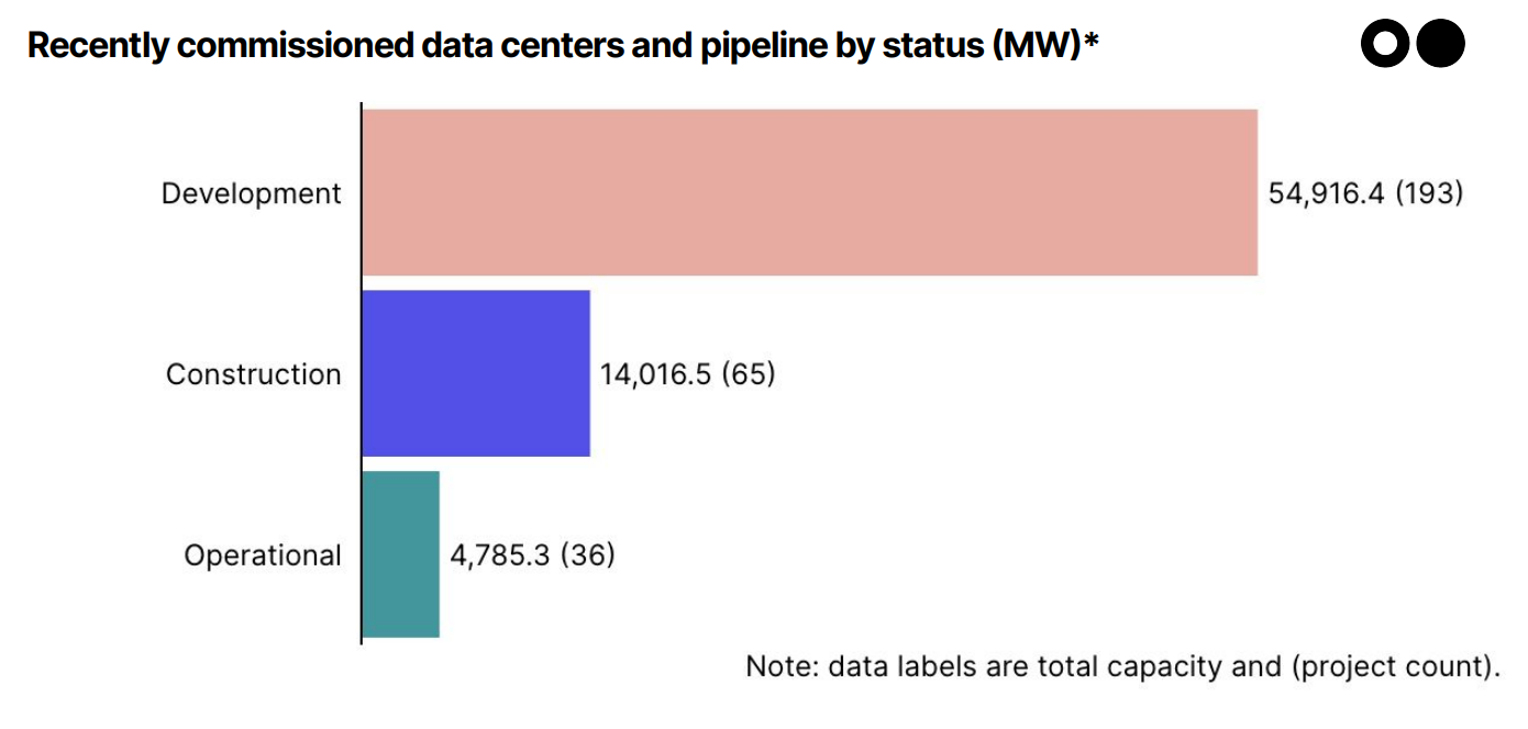 In Sightline’s dataset, we’ve tracked 294 data center projects weighing-in at 73.6GW demand, of demand, as of June. (These numbers are updated monthly for clients.) The pipeline is constantly evolving with new projects announced basically every day — we’re tracking those too.